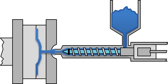 El moldeo por inyección es un proceso de fabricación para la producción de piezas mediante la inyección de material en un molde. El polímero de la pieza se alimenta, y mezcla y funde en un cañón calentado que lo forza a entrar a las cavidades de un molde en donde la resina se enfría y se endurece tomando la forma de la cavidad.