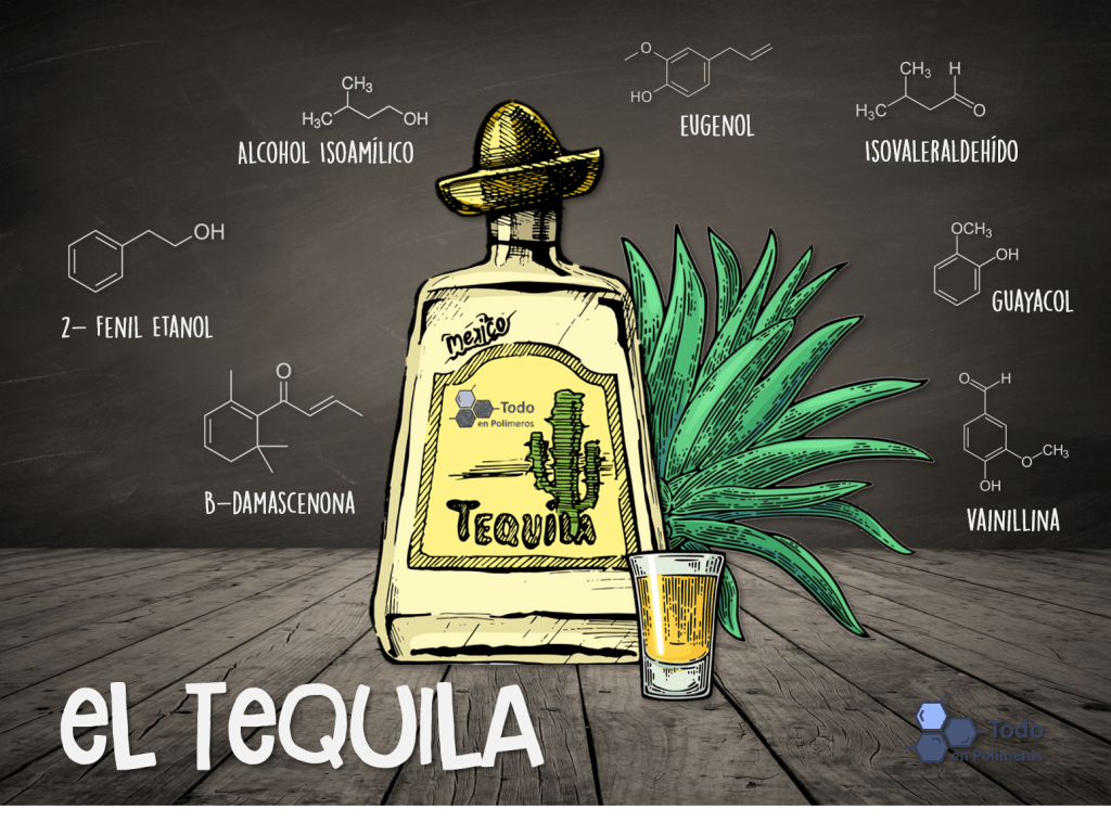 Algunos compuestos se derivan de la planta del agave azul entre ellos figuran los compuestos terpénicos como el alfa-terpineol, el linalol y el citronelol que no cambian durante el proceso.